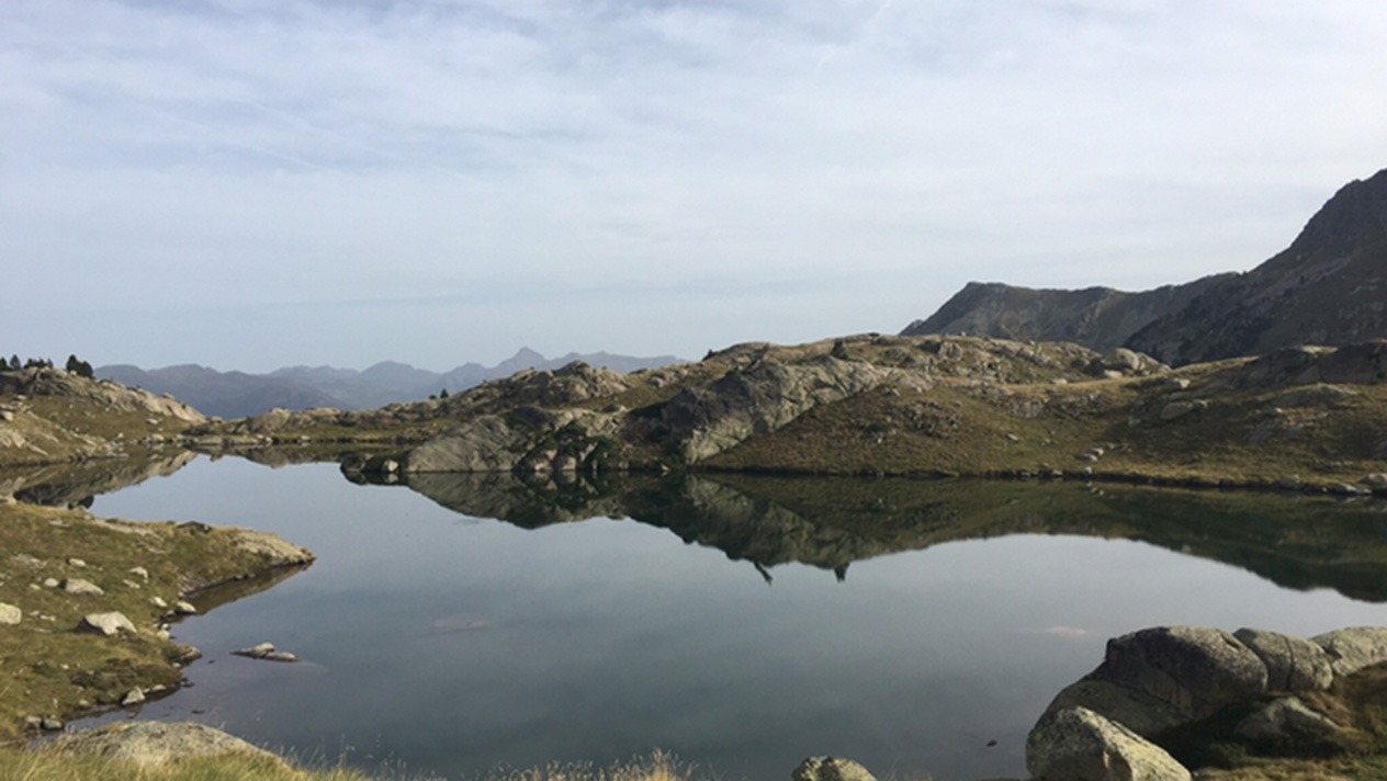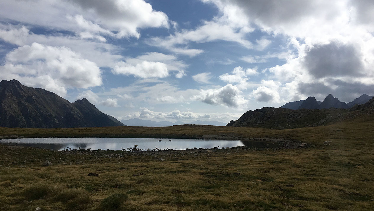 Wir setzen unseren Weg bergauf durch die karge, seendurchsetzte Landschaft fort, in der allmählich auch wieder der eine oder andere Baum wächst. 800 Höhenmeter und vier Kilometer weiter stehen wir auf dem Coll de Peguera (2718 m). Unter uns liegt die restliche Route dieses Tages, die uns zunächst steil vom Pass hinab auf ein weites, nahezu ebenes, Areal mit grossblockigem Gestein führt. Nach knapp zwei Stunden erreichen wir den Hauptweg, der uns am Estany de Monestero vorbei zum (sehr einfachen!) Refugi Ernest Mallafré auf 1900 Meter Seehöhe führt. Vor dem Abendessen können wir noch die Ruhe am nur wenige Gehminuten entfernten Estany de Sant Maurici geniessen.